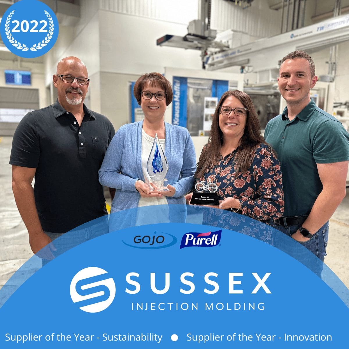 We are thrilled to announce that we have been recognized as the esteemed recipient of the 2022 Gojo Industries Supplier of the Year award in the categories of Innovation and Sustainability. This prestigious accolade highlights our unwavering commitment to pushing the boundaries of innovation while maintaining a steadfast focus on sustainable practices.